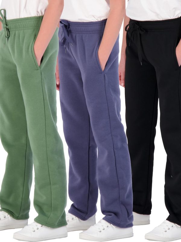 3 Pack: Girls’ Fleece Open Bottom Soft Athletic Performance Casual Sweatpants(Ages 7-16)