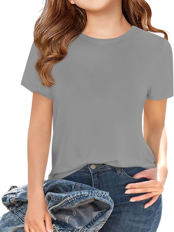 Girls Short Sleeve T Shirts Kids Summer Tops Crewneck Tees 5-14 Years